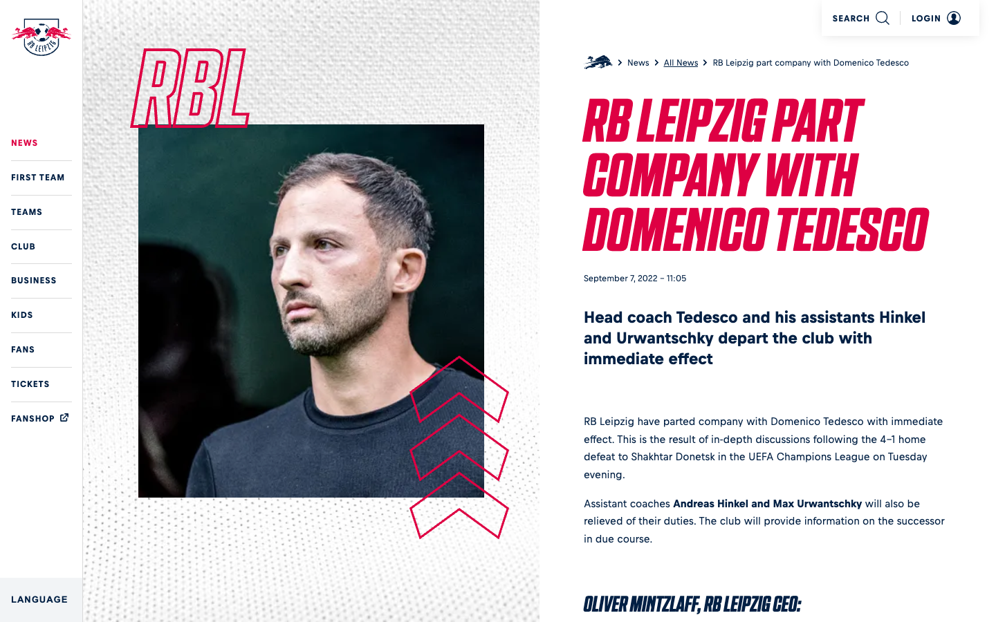 В Лейпциге Тедеско работал с 9 декабря 2021, а его контракт действовал до следующего лета.