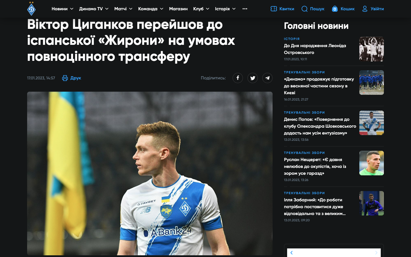 Еще один украинский талант перешел в европейский футбольный топ-чемпионат. Ведущий полузащитник киевского "Динамо" Виктор Цыганков стал игроком испанской "Жироны".