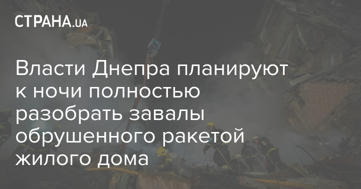 Влада Дніпра планує до ночі повністю розібрати завали обваленого ракетою житлового будинку