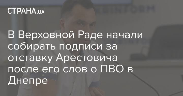 У Верховній Раді почали збирати підписи за відставку Олексія Арестовича з посади радника Офісу президента після його заяви про те, що ракета, яка потрапила до житлового будинку в Дніпрі, нібито була збита українською системою ППО.