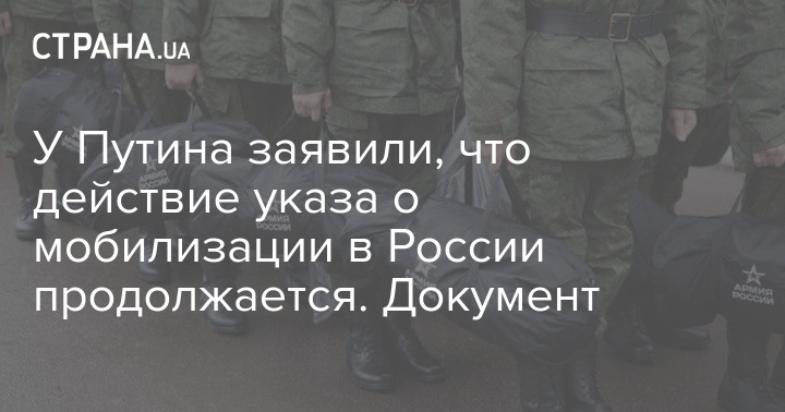У Путіна заявили, що дія указу про мобілізацію в Росії продовжується. Документ