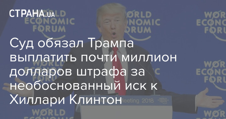 Суд у Флориді зобов'язавекс-президента США Дональда Трампа і одного з його адвокатів виплатити майже $1 млн штрафом за подання необґрунтованого позову проти майже трьох десятків передбачуваних політичних ворогів, включаючи Хілларі Клінтон і колишнього співробітника ФБР Джеймса Комі.