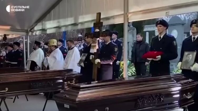 Прощання на Байковому цвинтарі із загиблим у Броварах керівництвом МВС. Скріншот відео
