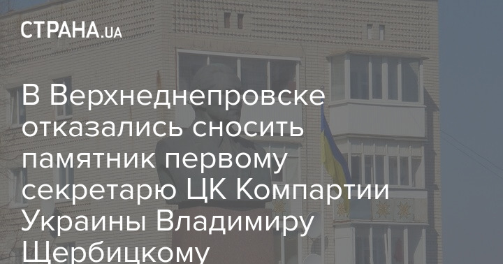 У місті Верхньодніпровську Дніпропетровської області місцева влада відмовляється демонтувати з головної площі міста пам'ятник колишньому лідерові Радянської України, першому секретареві Центрального комітету Комуністичної партії України Володимиру Щербицькому.