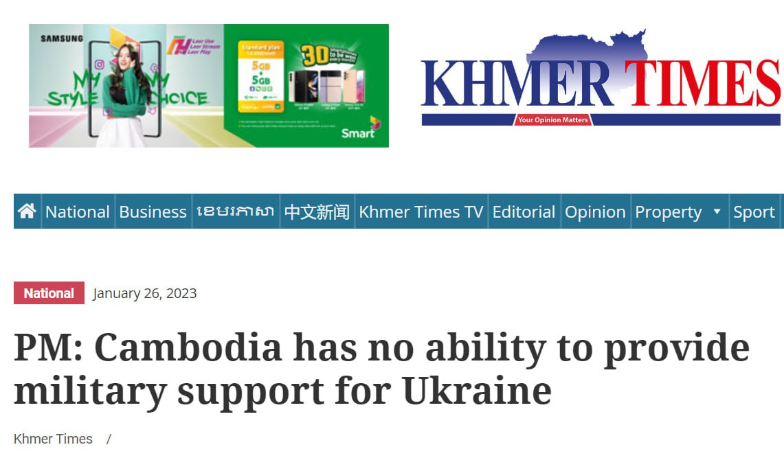 "Камбоджа не надавала жодної військової підтримки Україні. Камбоджа не має такої можливості. Технічна допомога Камбоджі українським саперам є суто гуманітарним актом", - заявив прем'єр-міністр Камбоджі Хун Сен.