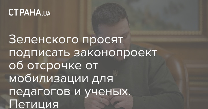 На сайті президента з'явилася петиція з вимогою до Зеленського підписати законопроект про відстрочку від мобілізації для наукових, науково-педагогічних та педагогічних працівників.