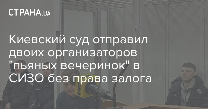 Двох організаторів "п'яних вечірок" у Києві відправили до СІЗО до 1 квітня без альтернативи застави.