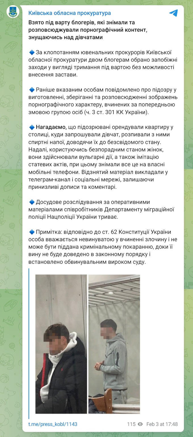 Раніше ми писали, що у Києві кілька хлопців із Івано-Франківська накачували дівчат наркотиками, після чого знущалися з них і знімали все на відео. Пізніше організатор вечірок Андрій із Івано-Франківська повідомив, що "задоволений популярністю" і заявив, що робив це, щоб зібрати донати для ЗСУ.