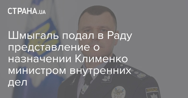Шмигаль подав до Ради подання про призначення Клименка міністром внутрішніх справ