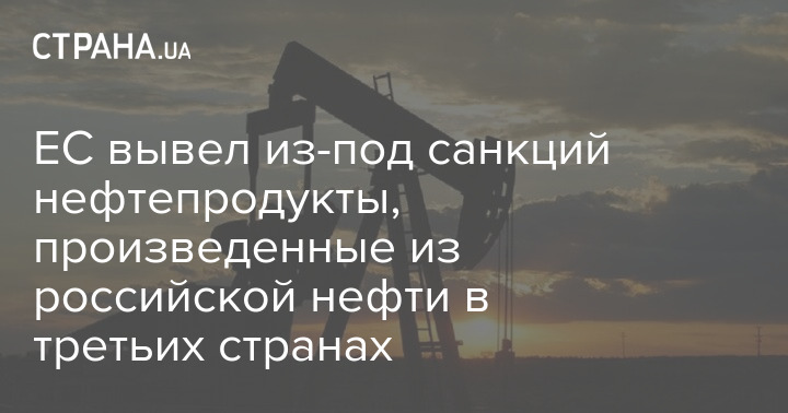 ЄС вивів з-під нафтових санкцій змішану російську нафту. Якщо російський нафтопродукт у третій країні поєднується з нафтою іншого походження, то такий нафтопродукт "більше не вважається продуктом російського походження, і гранична ціна не застосовується".