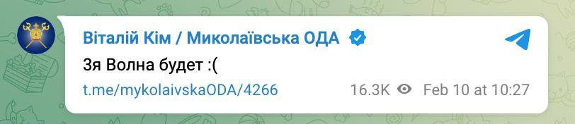 Глава Миколаївської ОВ Віталій Кім прогнозує третю хвилю ракет 10 лютого.