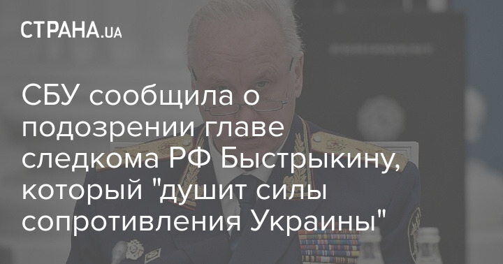 СБУ заочно представила підозру голові Слідчого комітету РФ Олександру Бастрикіну. Його звинувачують у скоєнні умисних дій з метою зміни кордонів України, а також виправдання дій Росії в Україні.