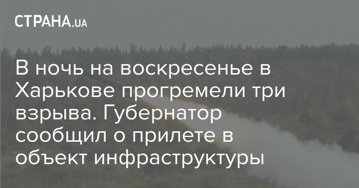 У ніч на неділю у Харкові прогриміли три вибухи. Губернатор повідомив про приліт в об'єкт інфраструктури