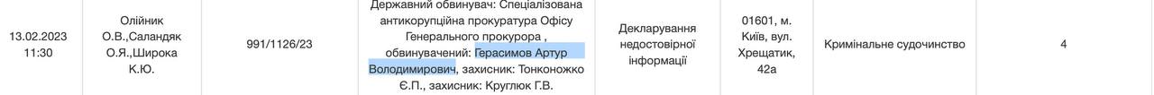 Також завтра на 11:00 у ВАКС призначено судове засідання у кримінальній справі проти народного депутата від фракції «Європейська Солідарність» Артура Герасимова у справі про недостовірне декларування.