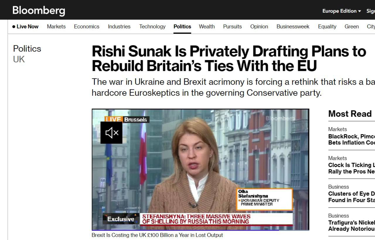 "Частково під впливом наслідків російського вторгнення в Україну високопоставлені британські державні службовці розробляють пропозиції про те, як Великобританія може більш тісно співпрацювати з країнами ЄС у низці сфер політики. Робота зосереджена на обороні, міграції та так званому економічному управлінні державою, включаючи такі торгівля, енергетика та міжнародні стандарти", - пояснює Bloomberg.