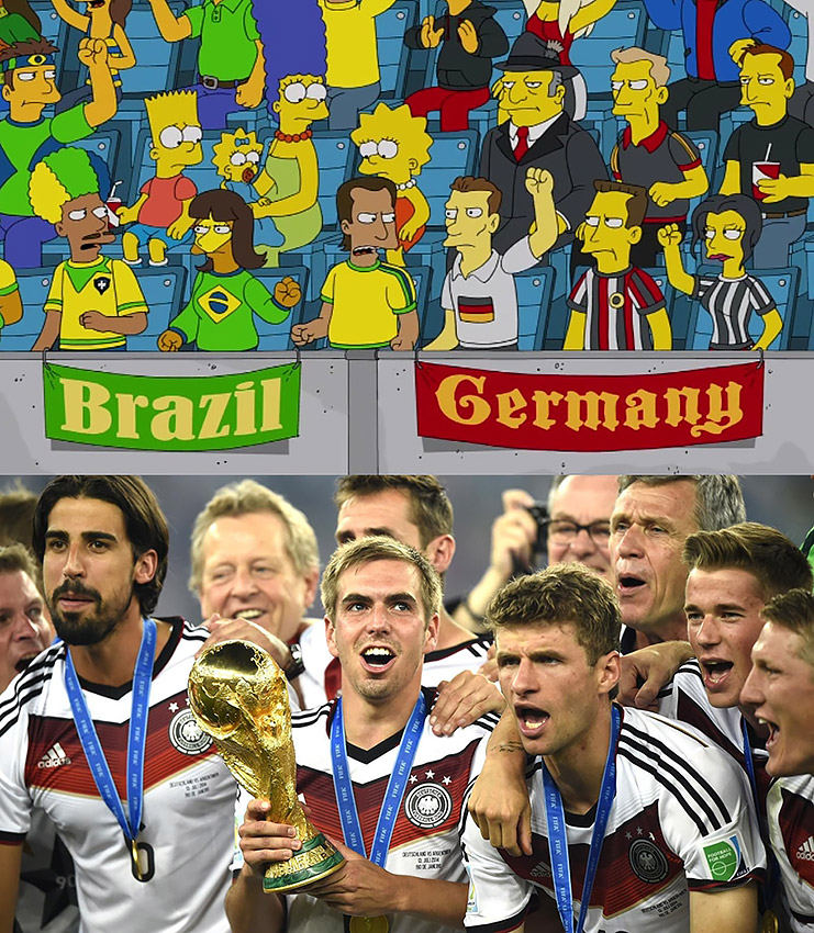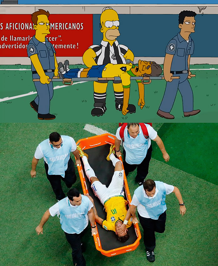 У цьому епізоді Гомер Сімпсон стає рефері на чемпіонаті світу з футболу у Бразилії. Що у мультику, що насправді Бразилія програла Німеччині.