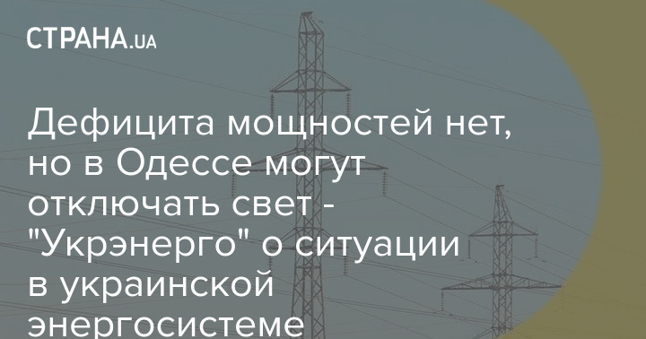 Дефіциту потужностей немає, але в Одесі можуть відключати світло - "Укренерго" щодо ситуації в українській енергосистемі