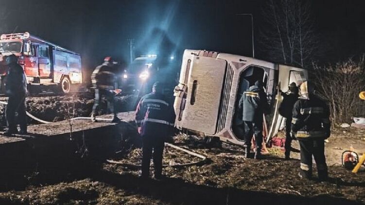 Біля Тернополя перекинувся автобус із пасажирами, які їхали з Буковеля. Є жертви. Фото