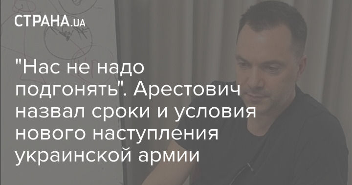 "Нас не треба підганяти, ми самі рвемося в контрнаступ. Все залежить від того, коли будуть укомплектовані технікою та озброєнням нові з'єднання на рівні бригад", - сказав Арестович.