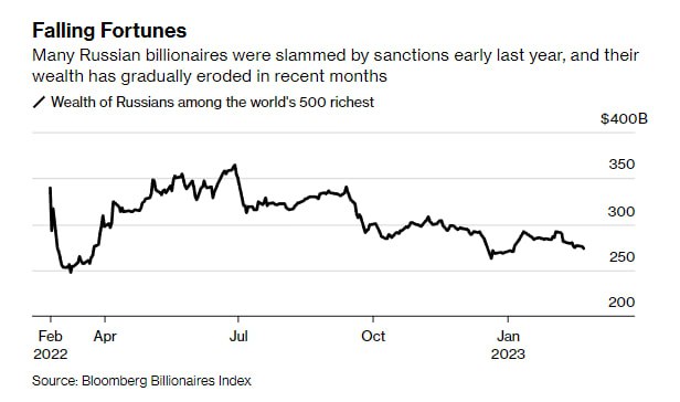 Станом на 23 лютого 2022 року 23 російські мільярдери, що входили до числа 500 найбагатших людей світу, мали сукупний власний капітал у розмірі 339 мільярдів доларів.