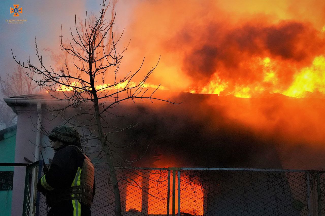 У Херсоні після обстрілу згорів дитячий садок, а рятувальники отримали поранення. Фото