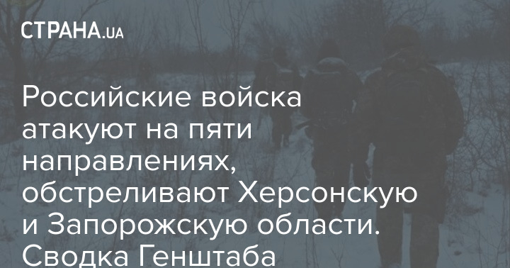 У Генеральному штабі Збройних сил України опублікували оперативне зведення з фронту станом на 18.00 25 лютого. Повідомляється, що російські війська наступають на п'яти напрямках, обстрілюють Херсонщину та Запорізьку область.