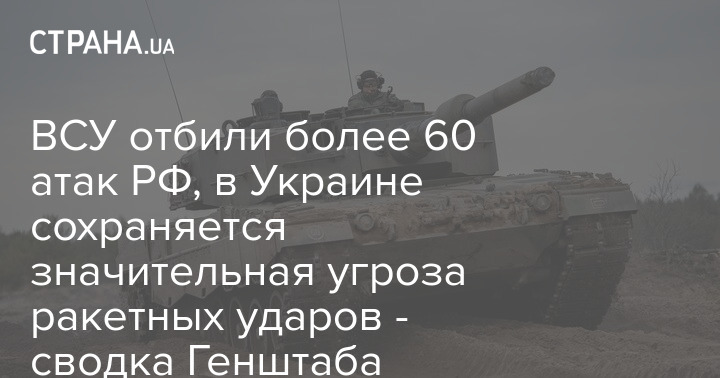 ЗСУ відбили понад 60 атак РФ, в Україні зберігається значна загроза ракетних ударів - зведення Генштабу