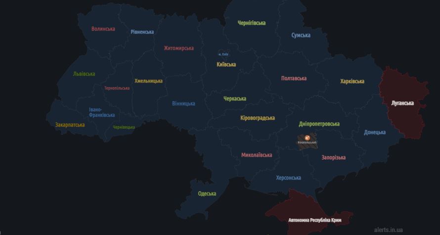 06.20 Карта тривог зараз. Загроза артобстрілу у Нікопольському районі Дніпропетровської області.