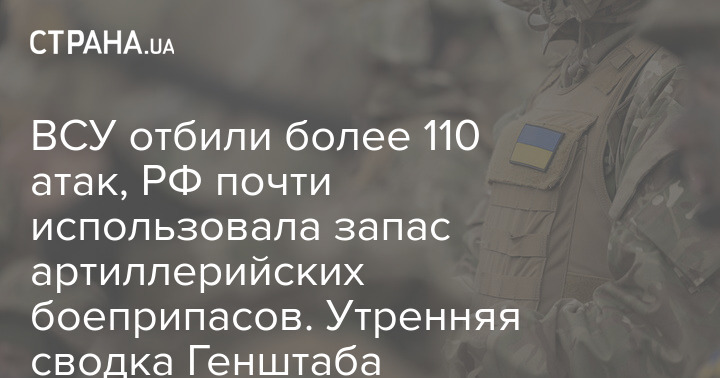 ЗСУ відбили понад 110 атак, РФ майже використала запас артилерійських боєприпасів. Ранкове зведення Генштабу