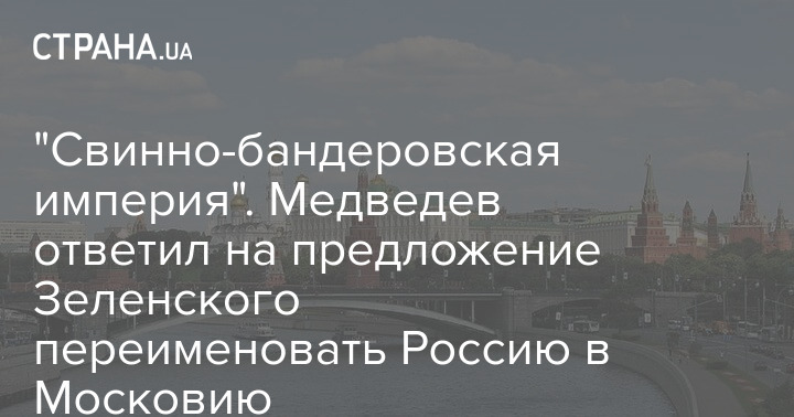 "Свинячо-бандерівська імперія". Медведєв відповів на пропозицію Зеленського перейменувати Росію на Московію