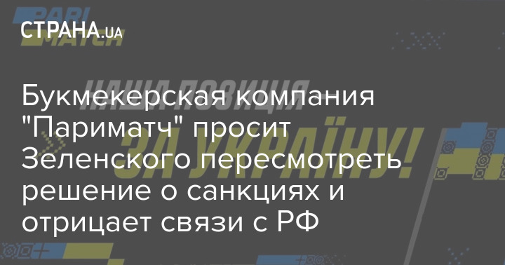 Букмекерська компанія "Париматч" відреагувала на рішення президента Володимира Зеленського про її включення до списку юридичних осіб, які потрапили під санкції РНБО через зв'язки з Росією.