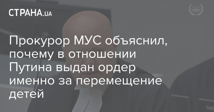 Прокурор МКС пояснив, чому щодо Путіна видано ордер саме за переміщення дітей