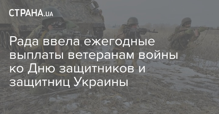 Сьогодні, 20 березня, Верховна Рада проголосувала за встановлення щорічної виплати ветеранам війни до 14 жовтня (День захисника).
