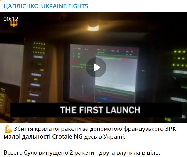 Повітряні сили ЗСУ показали відео застосування французьких ЗРК Crotale в Україні