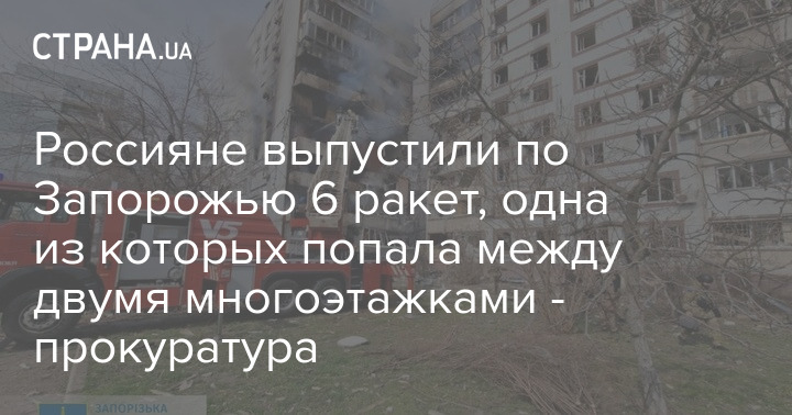 По Запоріжжю сьогодні близько 12:00 було випущено 6 ракет, тип яких наразі встановлюється. Одна з ракет потрапила між двома багатоповерхівками.