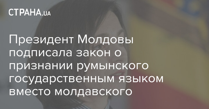 Президент Молдови Майя Санду підписала закон, який визнає державною мовою республіки румунську замість молдавської.