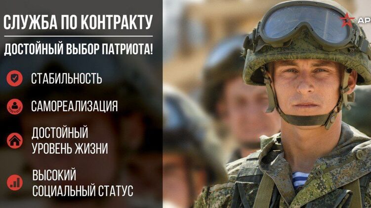 "Служба за контрактом - гідний вибір. Надходячи на військову службу за контрактом, ви обираєте стабільність, широкі можливості для самореалізації, гідний рівень життя та високий соціальний статус", - йдеться в одному з таких постів.