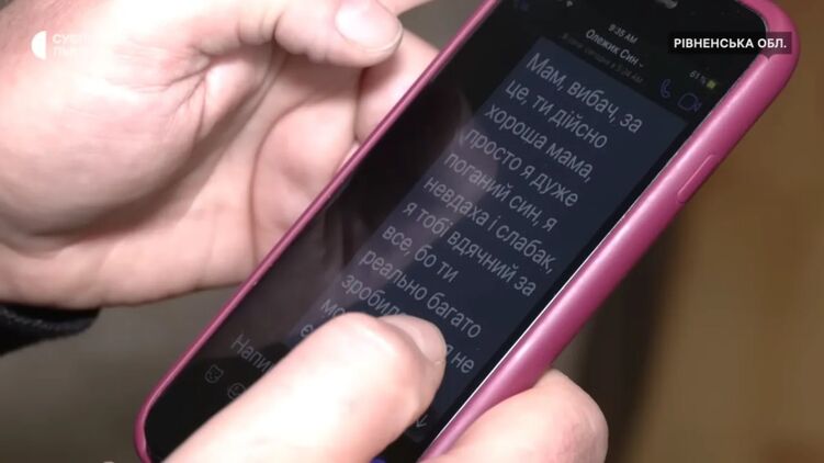 "Мамо, вибач за це, ти справді хороша мама, просто я дуже поганий син. Невдаха і слабак. Я тобі вдячний за все, тому що ти реально багато зробила...".