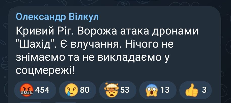 06.40 Прильоти "Шахідів" підтвердили владу Кривого Рогу.