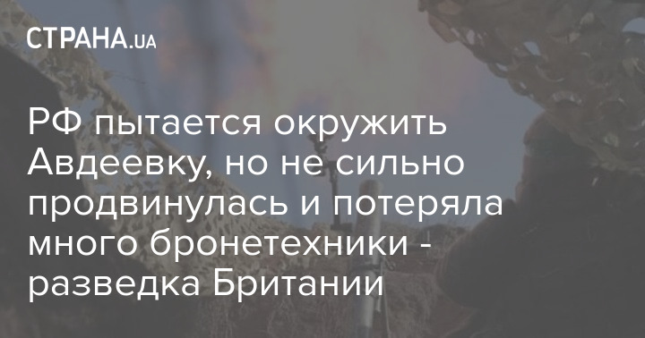 РФ намагається оточити Авдіївку, але не сильно просунулася та втратила багато бронетехніки - розвідка Британії
