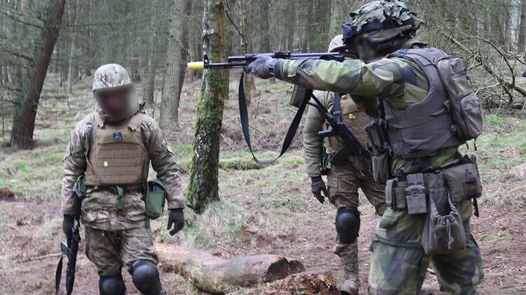 Військові інструктори Швеції навчають українських військових засадним та бойовим діям у лісах. Фото