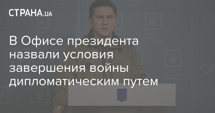 В Офісі президента назвали умови завершення війни дипломатичним шляхом