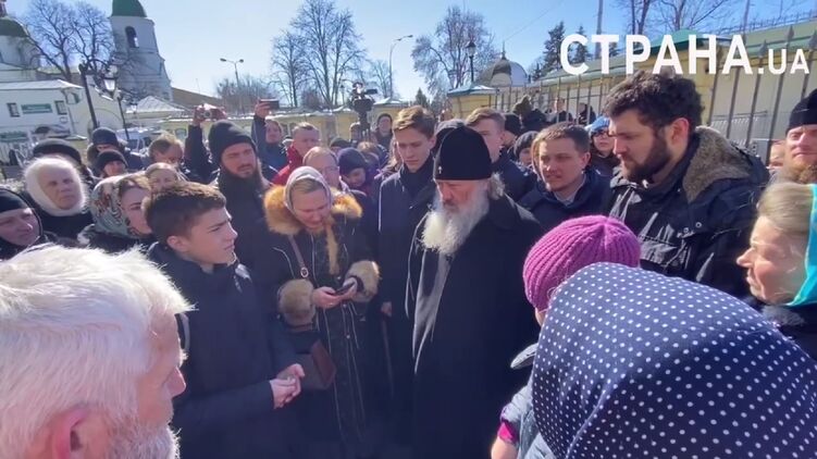 Настоятель Києво-Печерської лаври Павло із віруючими. Скріншот відео