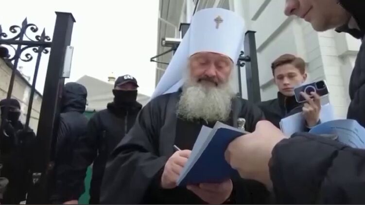 Також опубліковано відео, як намісник Лаври підписує документ, а ззаду стоять співробітники СБУ.