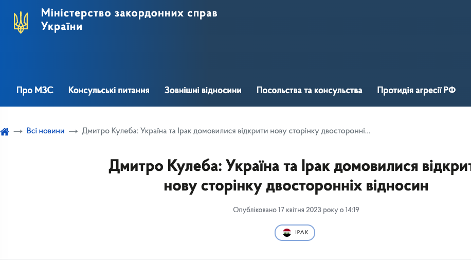 МЗС наголошує, що це був перший візит глави українського МЗС до Іраку з 2012 року.