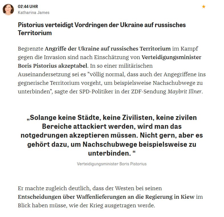 08.05 Україну в НАТО можуть ухвалити лише після закінчення війни, заявив міністр оборони Німеччини Борис Пісторіус.
