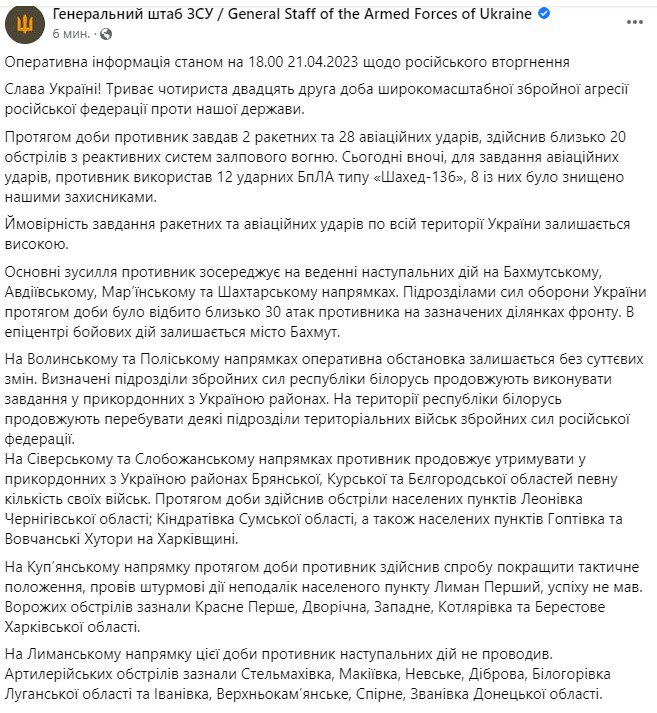Докладніше про те, що відбувалося вчора – читайте у підсумках за 20 квітня.