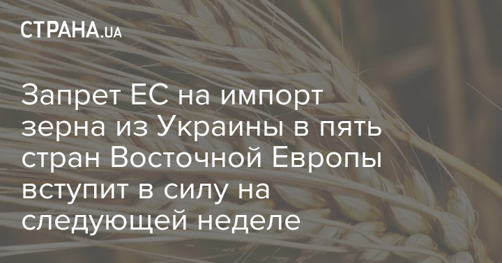 Заборона ЄС на імпорт з України пшениці, кукурудзи, ріпаку та насіння соняшнику до п'яти країн Східної Європи (Польща, Угорщина, Словаччина, Румунія та Болгарія) набуде чинності 2 травня.