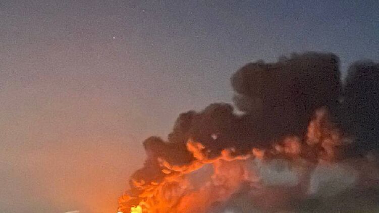 Паблики Кропивницького публікують фото нафтобази, що горить.