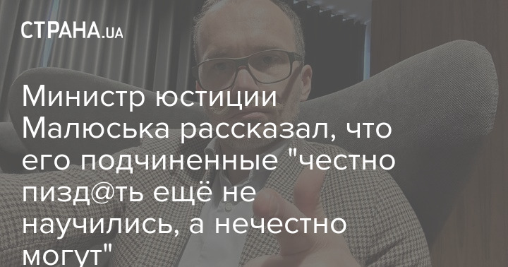 Міністр юстиції Денис Малюська в коментарях у себе на сторінці у Facebook розповів, що його підлеглі "чесно пизд@ть ще не навчилися, а нечесно можуть".